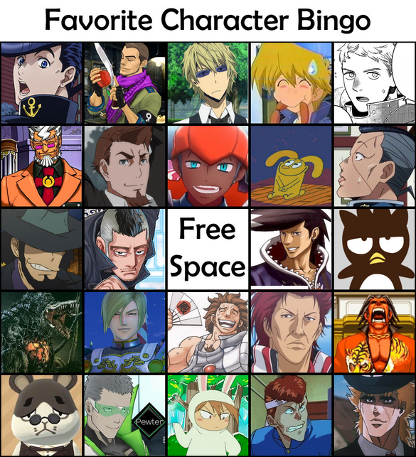 datz are'bal from spirit of justice and daryan crescend from apollo justice and speedwagon from phantom blood and jasper from dq11also from ace attorney i luv damon gant and his associated old men + mael stronghart also and will powers yippeeother other faves are kazuma kuwabara from yu yu hakusho and shizuo heiwajima from durarara!! and chairman rose from pkmn and mr saguaro from pkmn and magnus hammersmith from metalocalypse and togo shiba from kagurabachi and tuye from you shou yanjust look at this